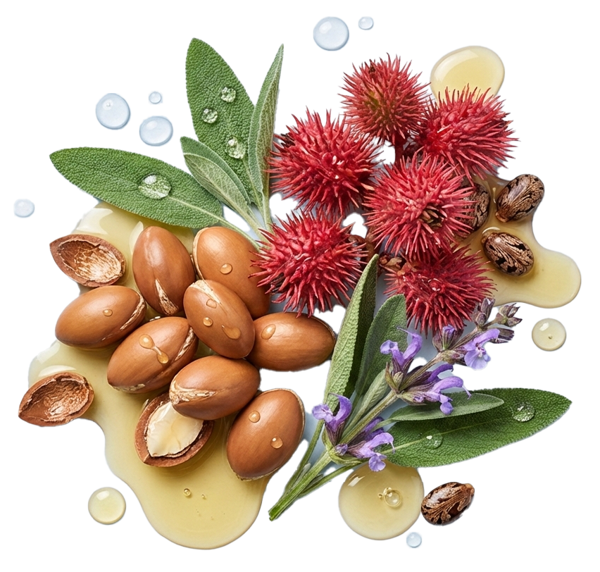 Aqua, Cetearyl Alcohol, Behentrimonium 87, Stearamidopropyl Dimethylamine, Dimethicone, Hydrolyzed Keratin, Argania Spinosa Kernel Oil, Ricinus Communis Seed Oil, Simmondsia Chinensis (Jojoba) Seed Oil, Camellia Sinensis Leaf (Green Tea) Extract, Aloe Barbadensis Leaf Juice, Salvia Lavandulifolia Herb (Sage) Oil, Mentha Piperita (Peppermint) Oil, Panthenol, Tocopherol, Olus Oil, Propylene Glycol, Citric Acid, Ethylhexylglycerin, Phenoxyethanol, Benzyl Alcohol, Menthol.